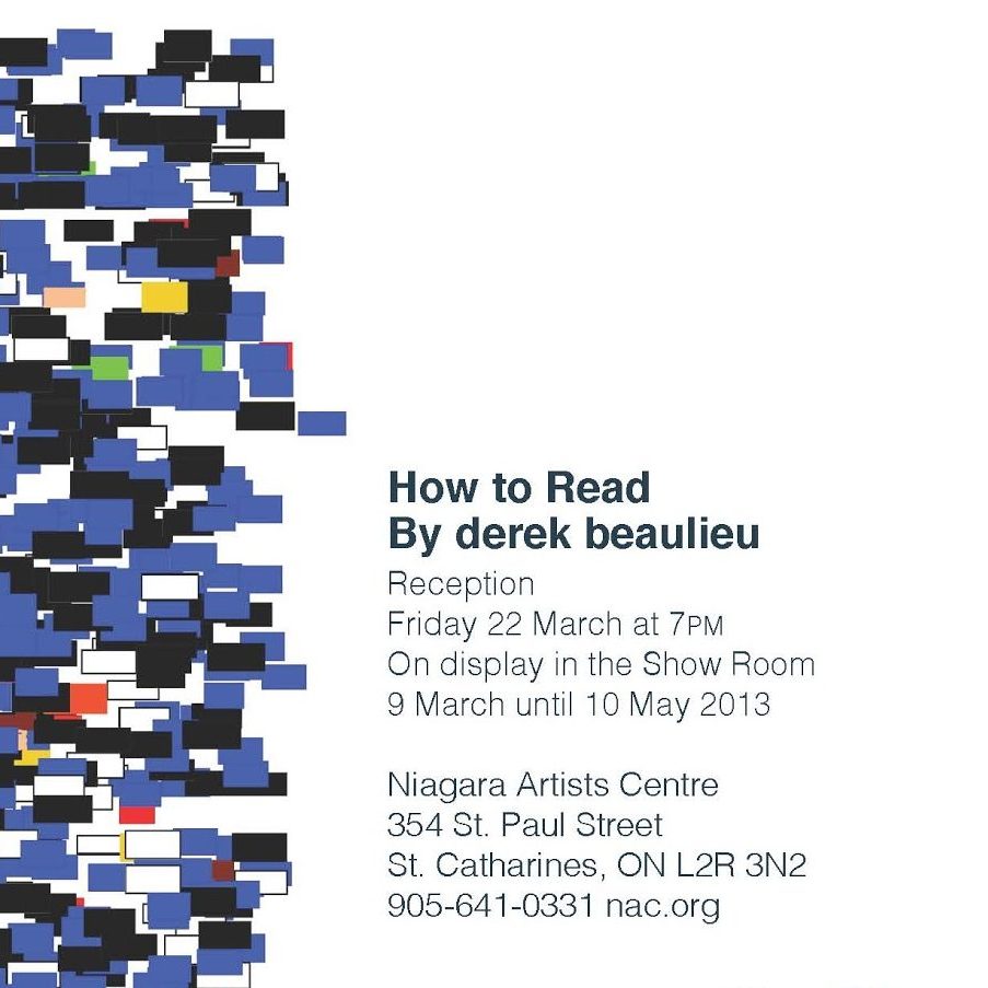 A self-described “linguistic architect,” derek beaulieu’s engagements have often recycled and reclaimed literary detritus with which he has built a complex of unimagined lettristic constructions. As though he is issuing a direct response to Brion Gysin’s oft-cited dictum “poetry is fifty years behind painting,” beaulieu’s HOW TO READ bridges that disciplinary gap. In a show where the conceptual and the visual coalesce, HOW TO READ moves beaulieu’s work from the book and from the journal and into the gallery where he explores the materiality of the page and the letter. Acknowledging that the information age has changed the way we navigate the word, HOW TO READ shows us how our cut, copy, and paste culture has transformed reading praxis. Exhibiting seldom seen work like “The Newspaper” and never before seen pieces like “The Alphabet,” this is beaulieu’s first major solo exhibit.
